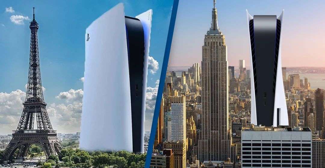 网友也发挥了5毛钱的PS技能,把PS5放在帝国大厦旁,P进了纽约的天际线。还有人让PS5与艾菲尔铁塔站在一起,帮巴黎打造了另一座地标。