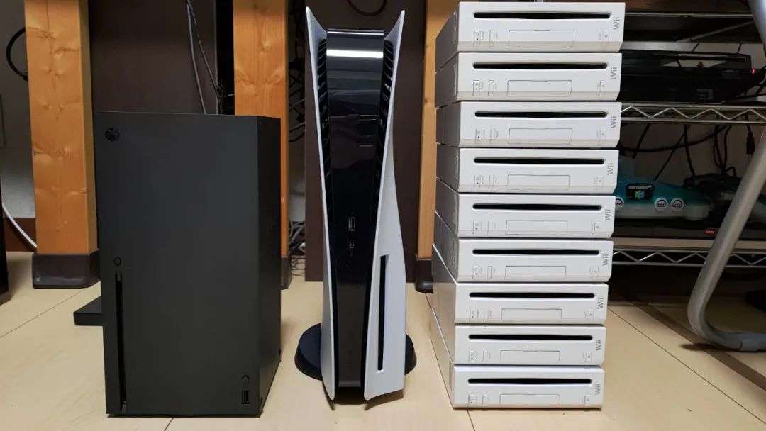 任天堂wii叠起来,加到第9个,才能与PS5齐平。