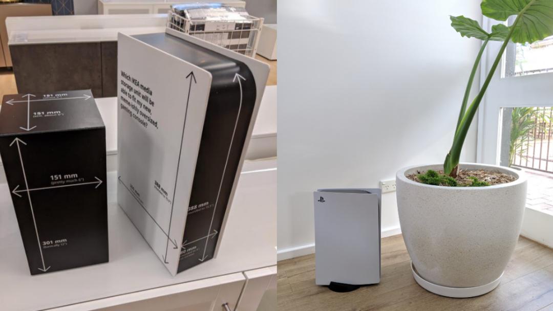 为了拯救玩家们的选择困难症,宜家专门在店内布置了PS5和Xbox Series X的等比例模型,以便玩家可以选购能妥善安置这些新时代游戏主机的家具。