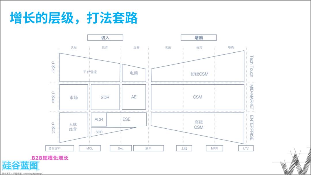 要做好 SaaS,就要做好 B2B。B2B 要照顾到老客户,越传统、存活越久的 B2B,越懂得照顾好自己的老客户,这就是蝴蝶结漏斗。围绕客户价值,每一步都有客户预期,交付一个预期价值的客户旅程。