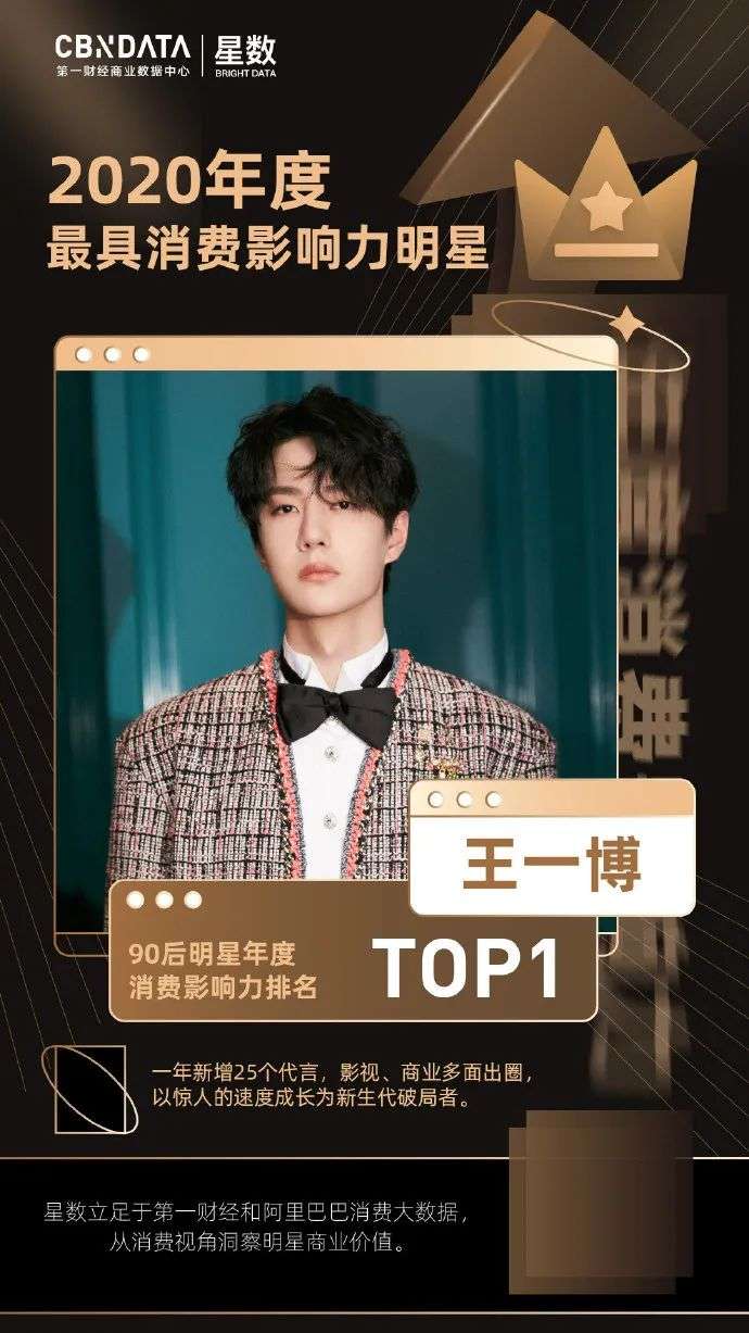在星数2020最具消费影响力明星榜单中,王一博获得90后明星年度消费影响力榜单TOP1,还荣获双11男明星品牌号召力TOP1,商业影响力也有销量加持。