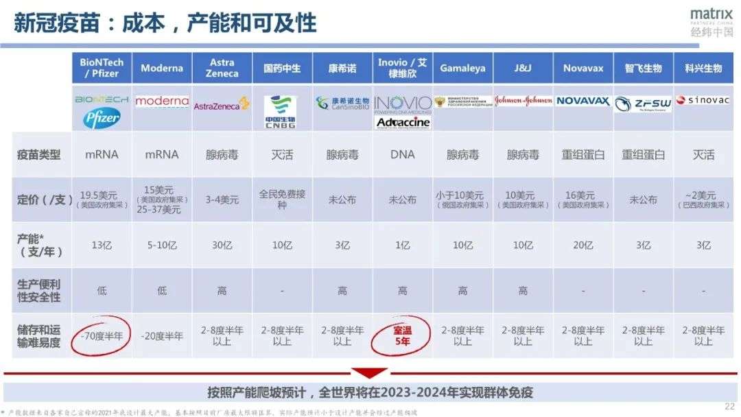 最后,分析完几种主要疫苗的有效性和安全性,我们再从成本、产能、储存、运输和接种的便利性上,分析一下疫苗量产及接种的时间表。