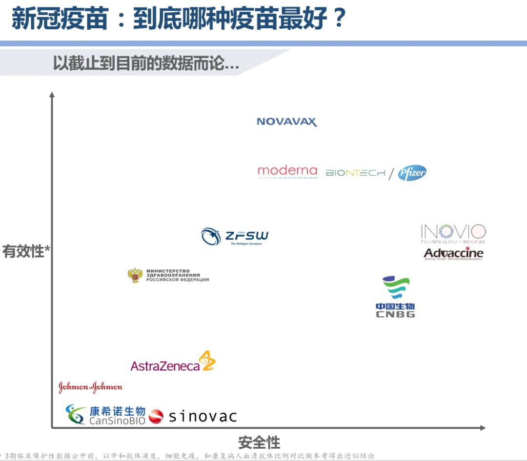 相较而言,从目前公布的数据来看,阿斯利康、J&J、康希诺生物等研制的疫苗,在有效性与安全性上和领先疫苗有一定差距。