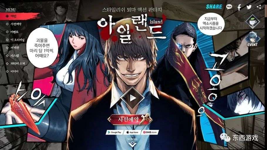 游戏公司GamePub于12月31日表示,将于2021年开放新手游《Island M》,在7天内游戏的预注册突破50万。网漫《Island》是杨庆日(插画)与尹仁完(文字)组合的代表作品之一,它通过揭露济州岛的秘密,以独特的神秘气氛揭开驱魔的故事。