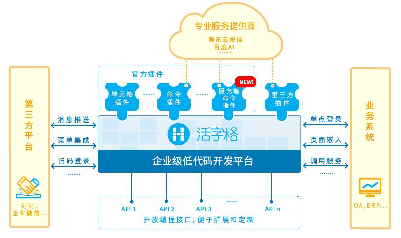 随着低代码应用场景的不断拓展,大量的个性化需求使得企业对低代码开发平台的开放性和集成性提出了更高的要求,活字格则通过插件机制打造软硬件系统集成,很好地解决了这一问题。