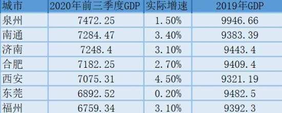 从2006年上海GDP首破万亿到2019年佛山GDP破万亿,截止2020年,已有17个城市入围“万亿俱乐部”。综合2020年前三季度经济数据,泉州,南通,济南,合肥,西安,东莞和福州等七个城市的GDP已达9000亿,几乎已经迈入了万亿城市的队伍。