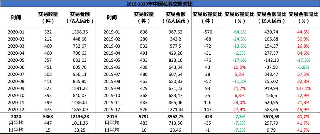 (2019-2020中国私募交易对比 数据来源:鲸准)