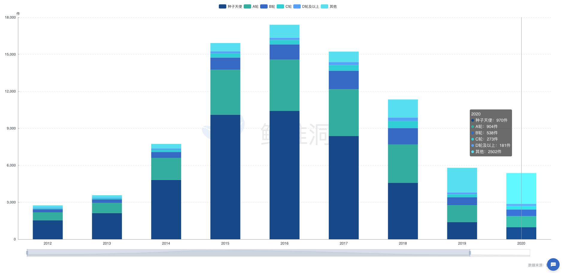 优质的创业公司、创业者,本身就是一种稀缺资源。2020年,这种稀缺程度还在进一步加强。2020年,一级市场种子轮、天使轮、A轮投融资交易,呈现出了数量、金额双降的局面,不同于此前数量降低金额上升。可以预见,在未来,优秀的创业者、创业公司,还将更加稀缺。