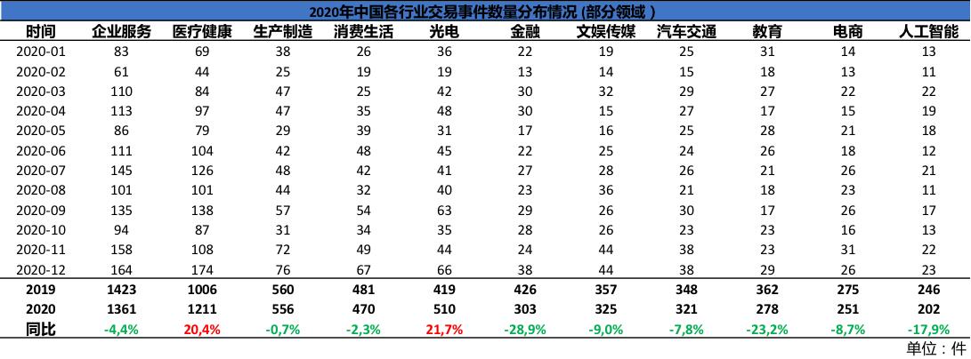 · 2020年企业服务、医疗健康依旧是年度最大交易热点。