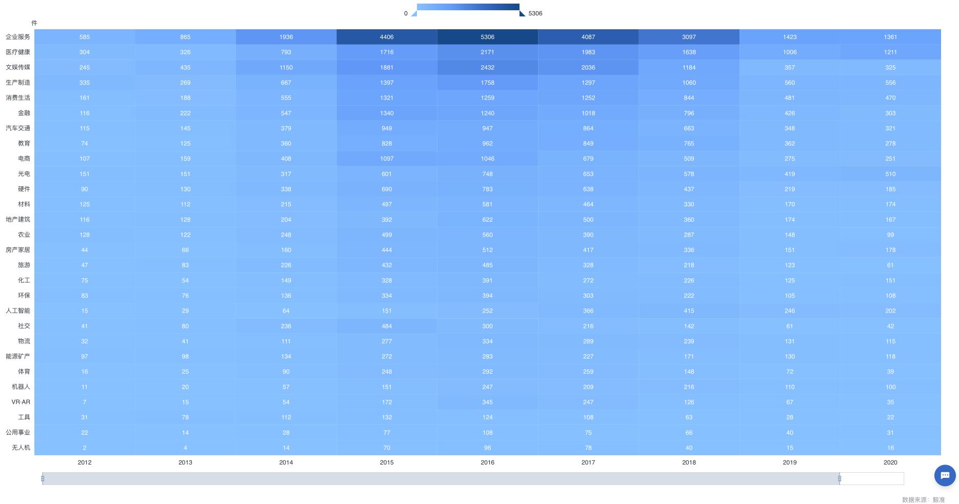 (2012-2020年中国各行业交易事件数量分布情况 图片来源:鲸准)