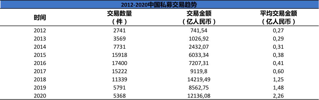 (2012-2020中国私募交易趋势 图片来源:鲸准)