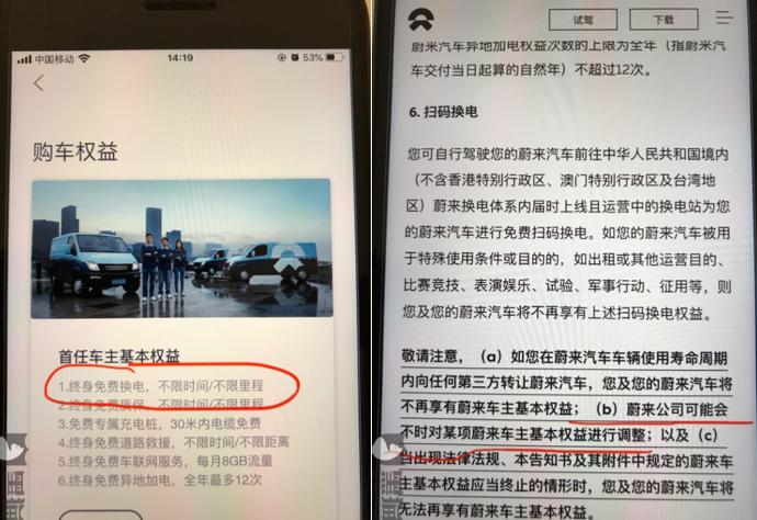 针对“蔚来公司可能会不时对某项蔚来车主基本权益进行调整”这一条款,蔚来方面相关负责人表示,购车时所承诺用户权益,始终是100%保障的。“调整主要针对权益实施的细则的优化,比如2018年的权益告知书中是没有终身免费换电的,新增的这一项用户福利也同样覆盖了之前的老用户,所以对于老用户来说这就是权益调整。”