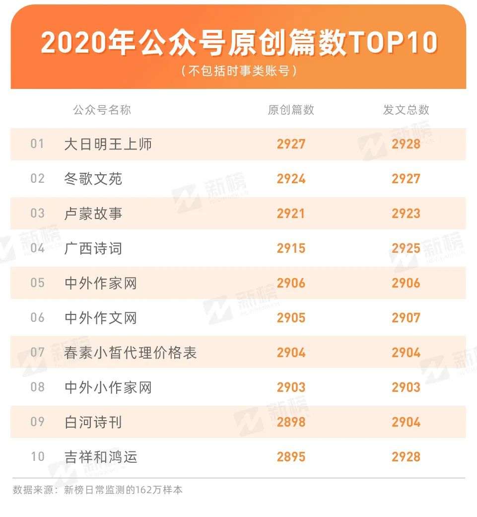不过这些推送文章篇数最多的账号,并等于原创最多的账号。