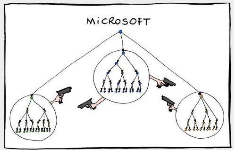 2010年左右的微软,智能手机业务被苹果和Google绞杀;云计算业务远远落后于当时的领导者亚马逊;Bing搜索在继续烧钱,全额市场份额不到6%;Winows8成为微软历史上被诟病最多的系统;Office被系统绑定,限制使用台数。