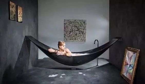 比如浴缸,竟然还能做成这样吊床式的,你是不是在想:要是这玩意能晃就好了