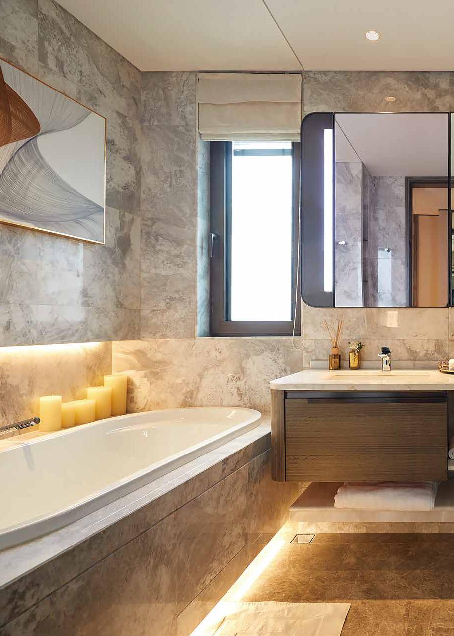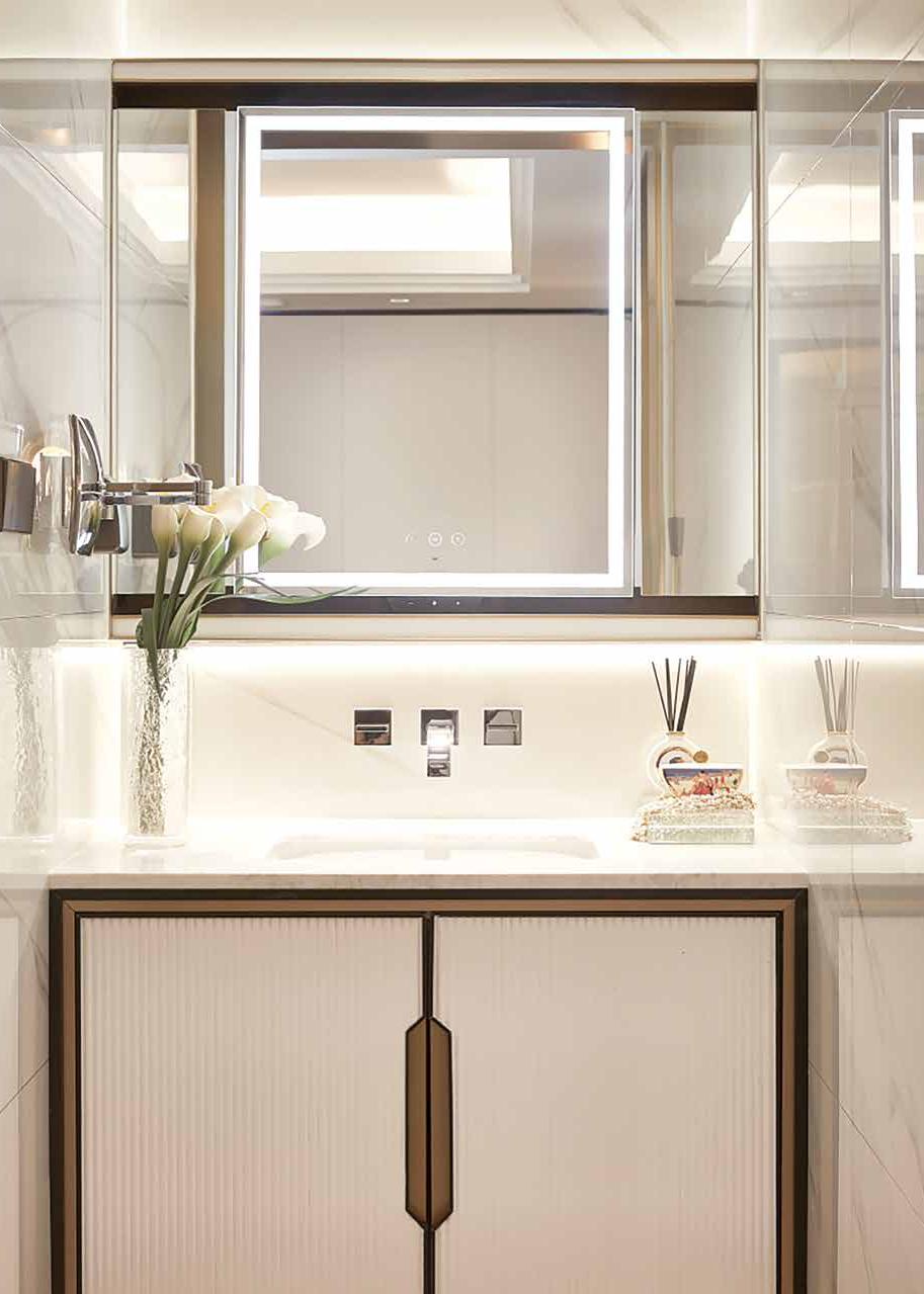 中海建国里,用的是智能马桶,上海复地雅园公馆卫生间用这样的智能镜柜,科技感已经在卫浴空间变得越来越重要