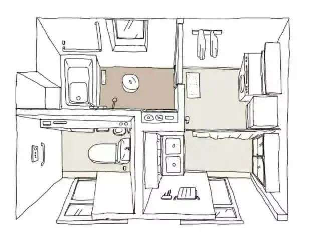 什么意思,就是把淋浴、台盆以及马桶这三个区域规划为三个独立区域,一个区域划分为三个区域,一来利用率开始提升,二来互相之间不会串味,看上去挺好的解决了卫生间的问题更夸张的还有类似的四分离设置,将洗衣房的功能放在卫生间内