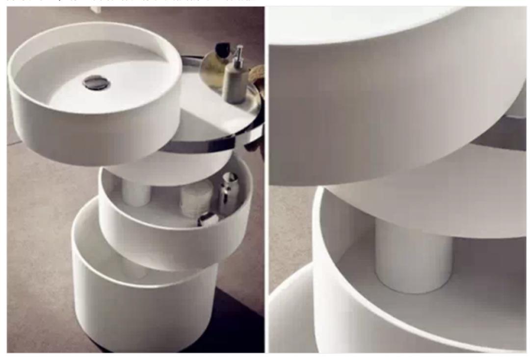 更夸张的来了:可旋转式洗手台,除了能变换造型,还兼具了大量的收纳功能