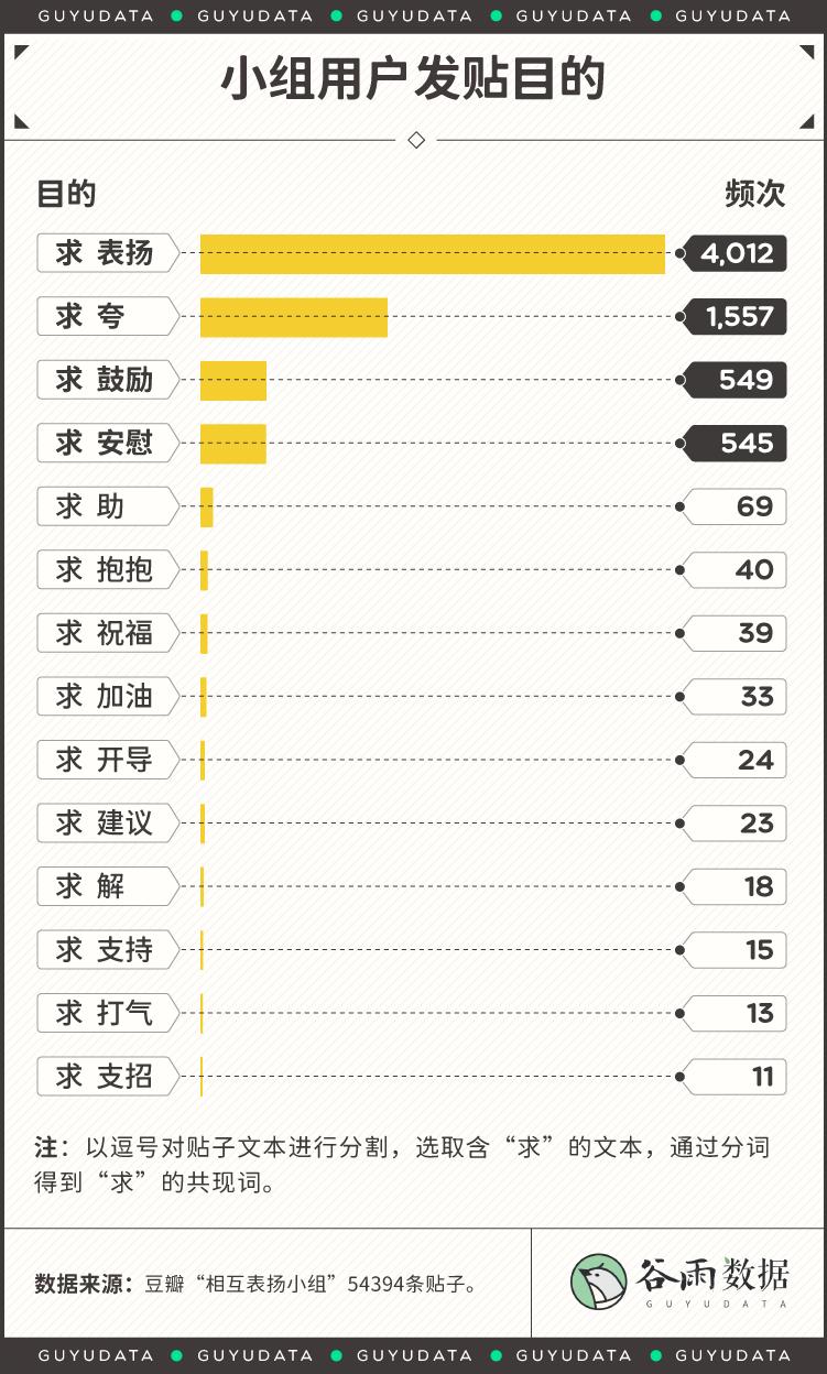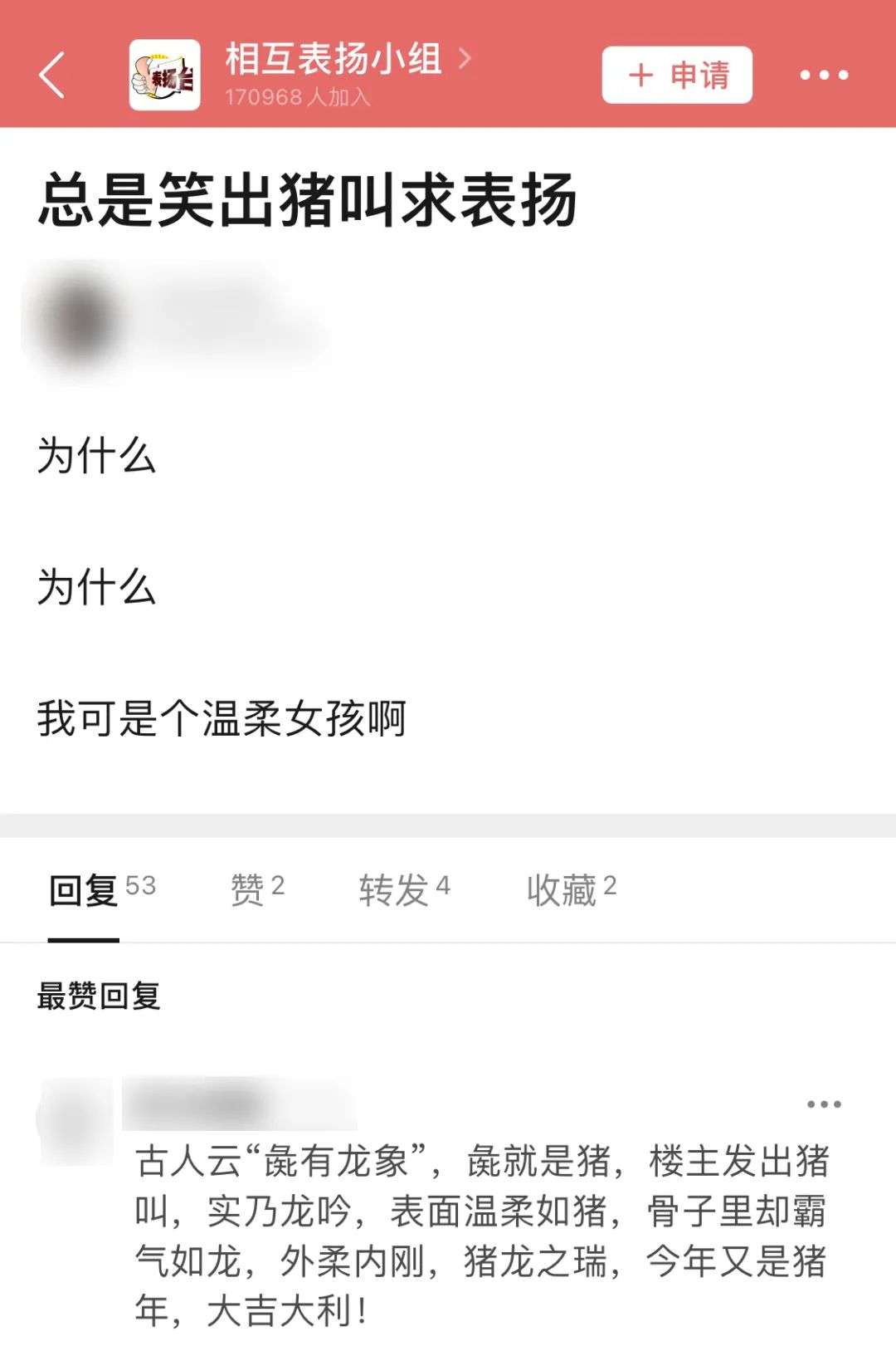 虽然很难说清楚小组里铺天盖地的“彩虹屁”,究竟是发自内心的肺腑之言,还是彼此揶揄逗趣的玩笑话,但能够确定的是,求表扬、求夸奖的确是组员们发贴的首要目的。