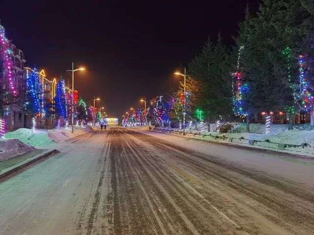 1月4日晚上7点50分,零下44度的气温,阿木尔的主干路上几乎空无一人(腾讯科技拍摄)