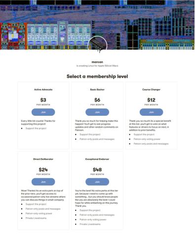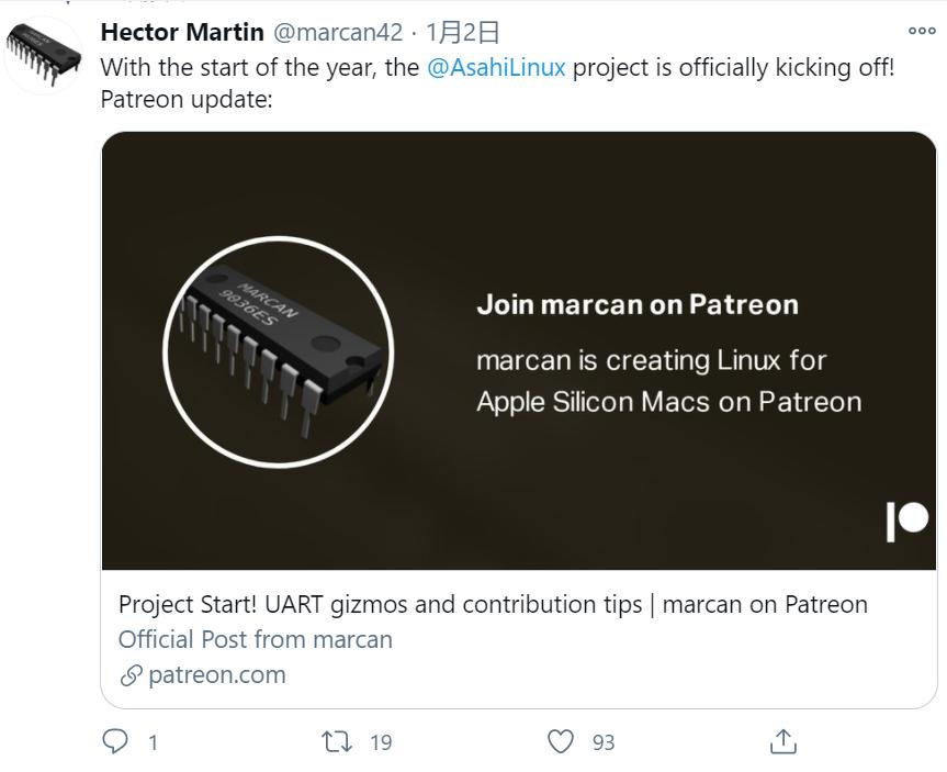 此前,CSDN 也曾报道过 Hector Martin 正在众筹平台 Patreon 上启动了一项向 M1 Mac 移植 Linux 的项目(https://www.patreon.com/marcan)。