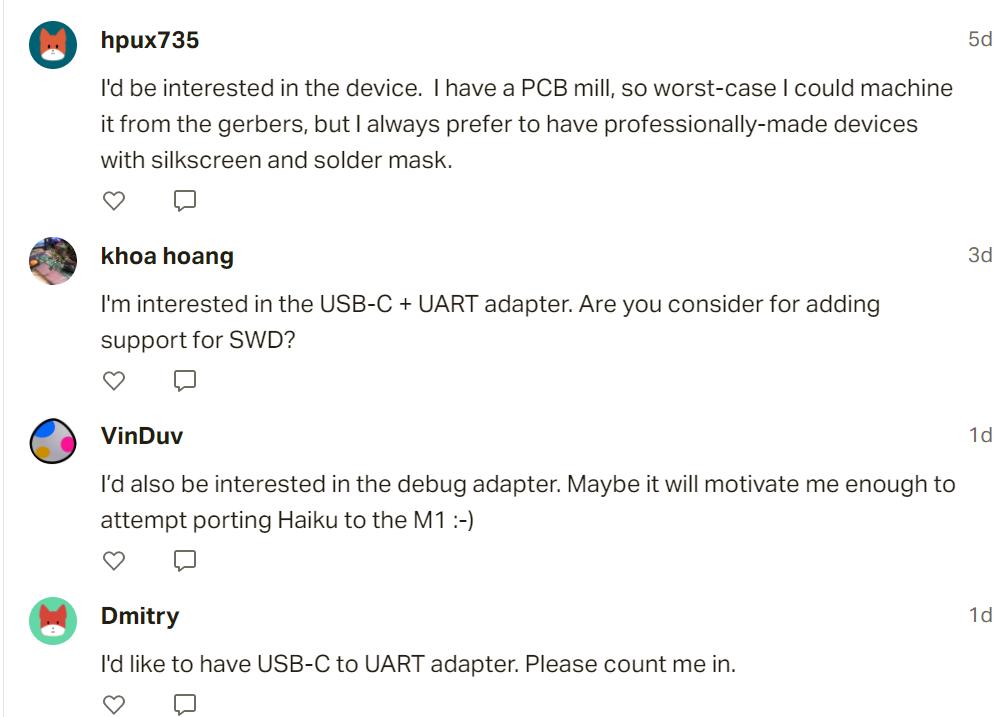 我想出了如何在外部 Thunderbolt 端口上启用调试 UART(感谢 t8012dev 团队提供 USB-PD 模块)。首先,这是一种获得低级通信通道的方法,该通道足够简单,可以用来调试其余的启动过程。原型硬件使用 Arduino 和 FUSB302 USB-PD Interface IC,代码在 GitHub(https://github.com/AsahiLinux/vdmtool)上。我打算将其“生产”版本设计为开放式硬件设计,并且我正在考虑自己制作一个小型的自制产品(10-20个)。