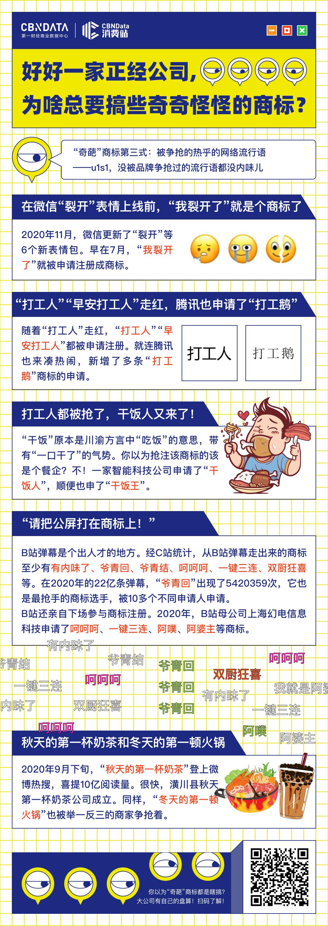 2020年过去了,你还记得多少个奇特的商标?有没有李佳琦魔性的“oh mygod,买它买它!”,B站2020年度弹幕“爷青回”,或者是可口可乐申请的“可NIU了”商标?