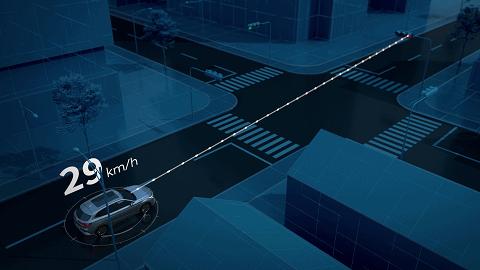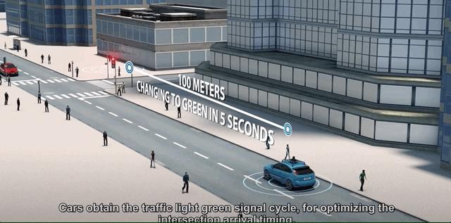 接收到红绿灯信息后,汽车会自动调整车速,以合适的速度通过红绿灯。如果经过测算,车辆无法在限速范围内通过路口,车辆就会自动加速、刹停。