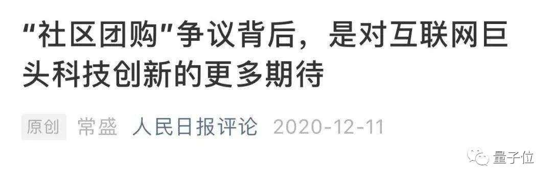 《人民日报》还评论说, 别只惦记着几捆白菜、几斤水果的流量……巨头拥有雄厚的财力、大量的数据资源、领先的数字技术,人们期待巨头们不仅能在商业模式上进行创新,更能承担起推进科技创新的责任。