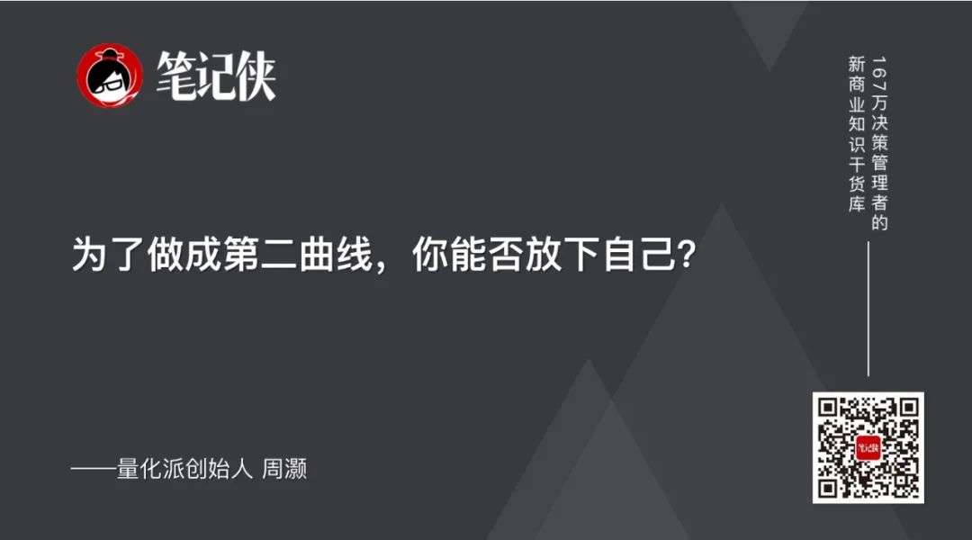 为了做成第二曲线,你能否放下自己。假设你自己不能做,你能不能放下自己,能不能从“我要做成这件事情”变成“我找到一个特别欣赏的人,他的使命愿景比我还强,我退一步,成就他把这件事情做成”,这个转变是非常困难的。