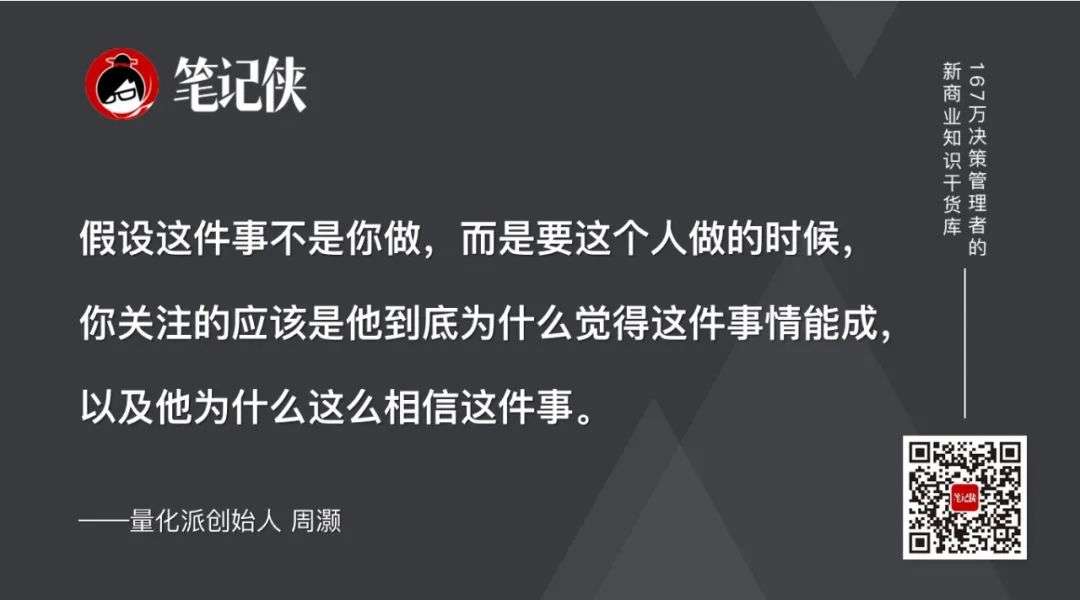 假设这件事不是你做,而是要这个人做的时候,其实你关注的应该是他到底为什么觉得这件事情能成,以及他为什么这么相信这件事。