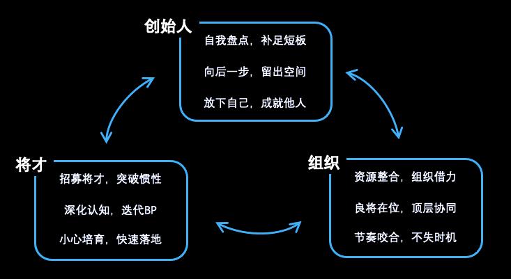 BP的产生其实就是第二曲线推演的过程,是你在找到合适人选的过程。这是我们总结下来在里面非常重要的一点,你依靠的是这个将才本身的自我演化能力、生长能力和他对于事情的认知能力。