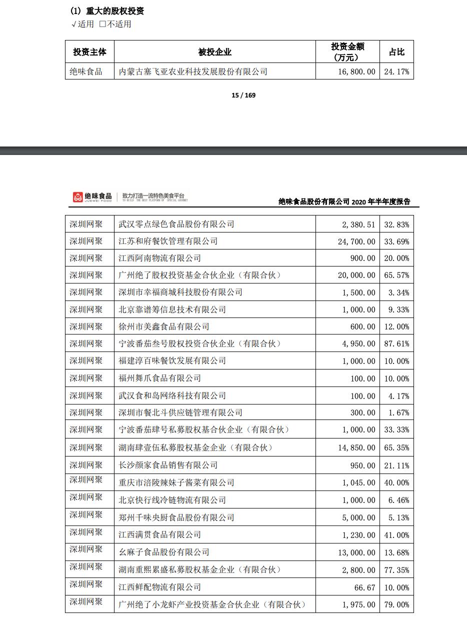 公开资料显示,网聚投资已至少投资19家企业,其中既有和绝味同业的卤味食品公司,也有产业链上下游的调味品制造商、物流服务商和餐饮企业。