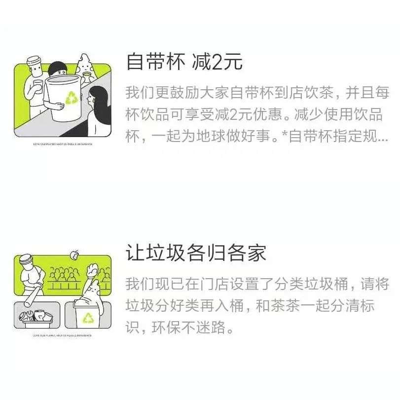 ● 3、部分品牌提供自带杯优惠活动,倡导环保。
