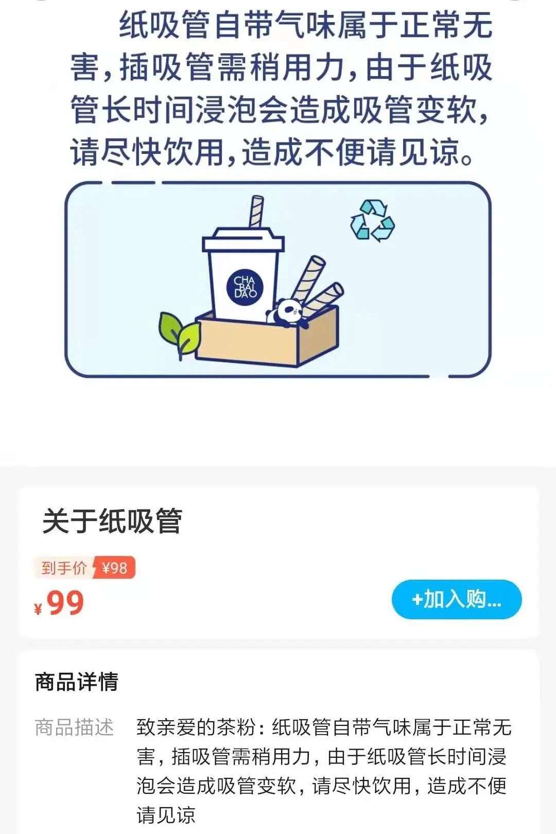 像茶百道、CoCo都可、一點點、古茗等连锁品牌也全部换成了环保吸管。针对纸吸管的性质特点,茶百道也在点单中给出了使用提示。