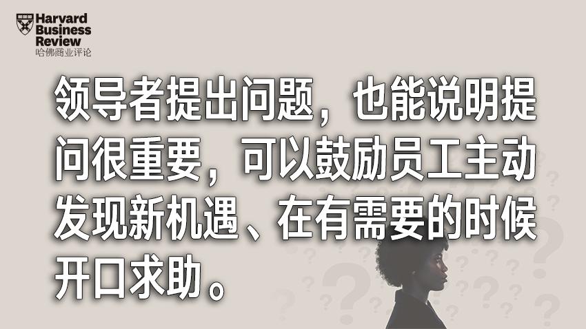 领导者提出问题,也能说明提问很重要,可以鼓励员工主动发现新机遇、在有需要的时候开口求助。这样的举动可以塑造重视学习的企业文化,这是很重要的,因为鼓励每位员工快速学习、为利益相关者实现更大价值的组织能够在将来取得成功。