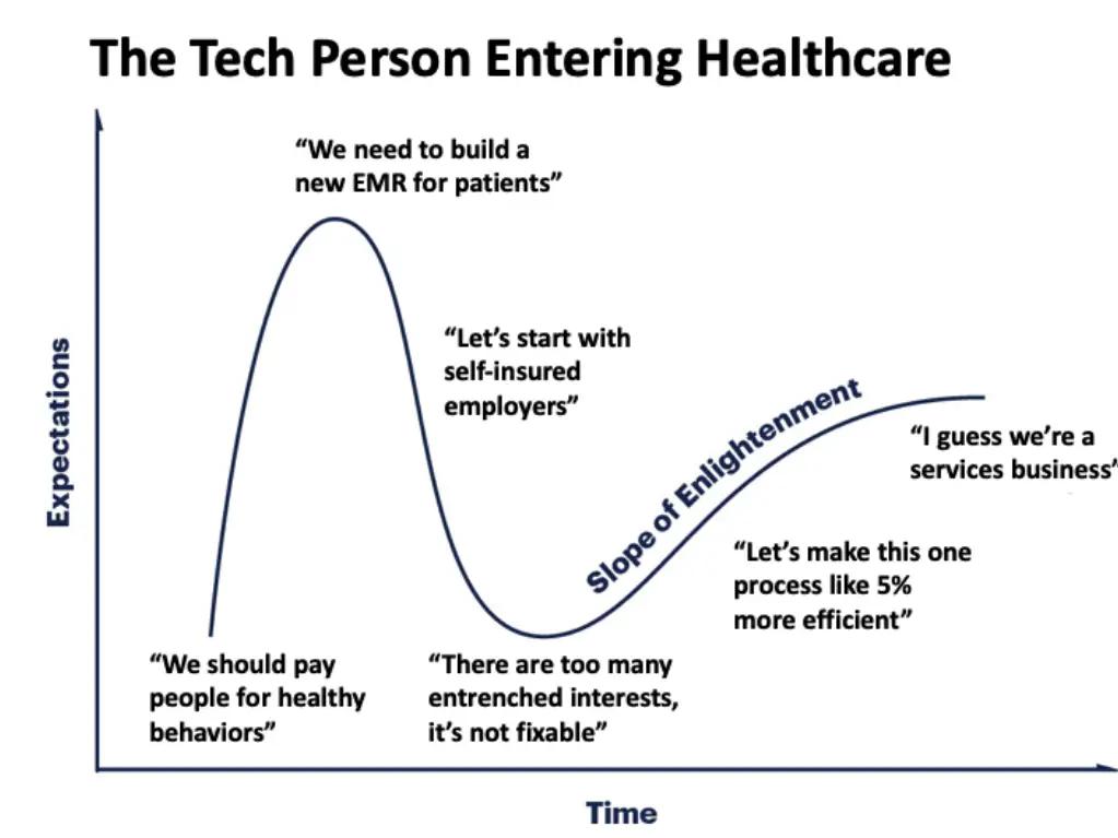 他表示,在Haven的发展道路上,发起方最终发现,它们很难让大型雇主买单。这些雇主承担了美国大部分的医疗成本,但厌恶风险,注重数据驱动。与大部分创业公司不同,Haven有着非常强的品牌知名度,也有大量的员工群体来做试验,但最终却仍然无法克服糟糕的组织架构带来的问题。