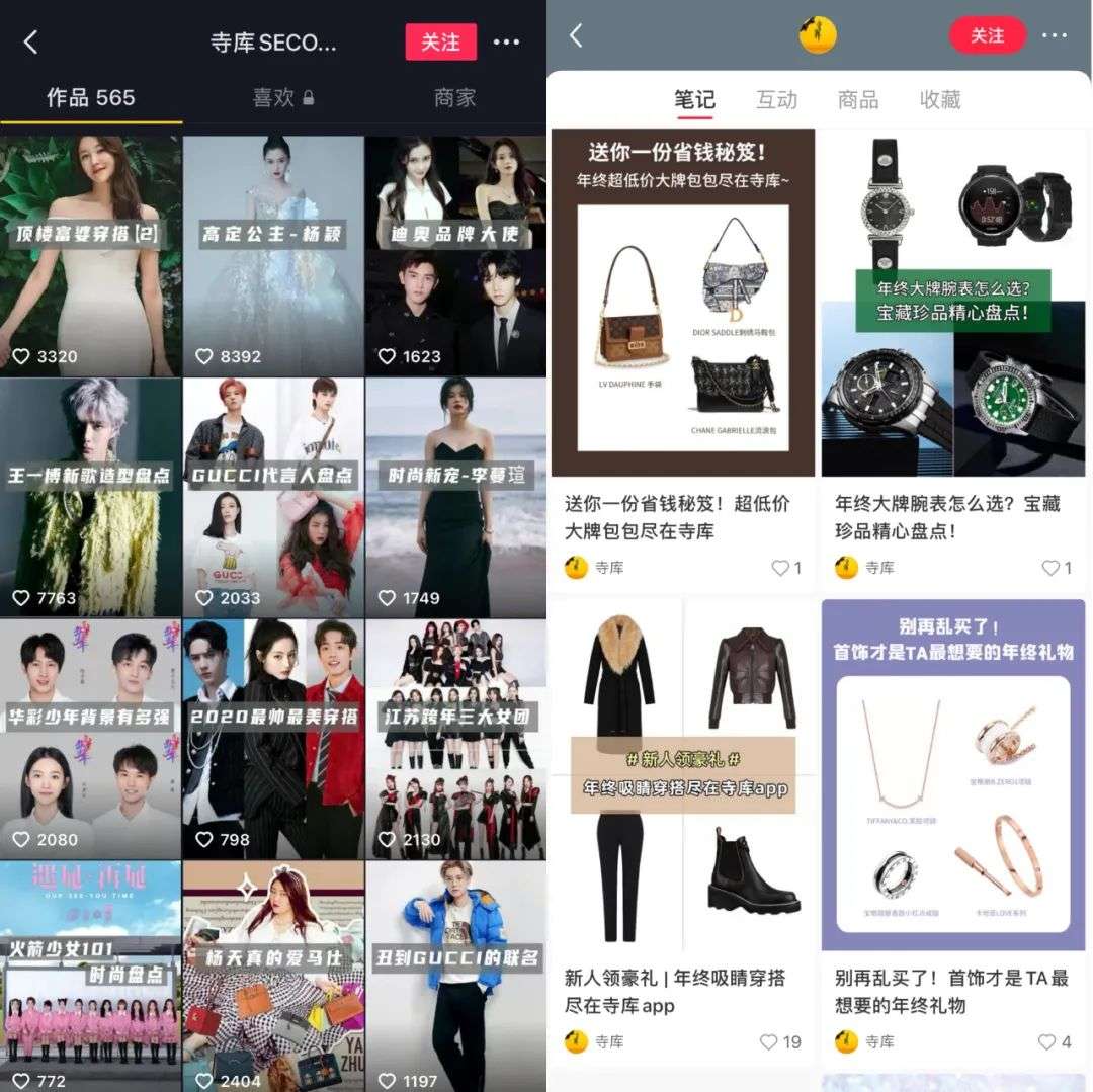 而在奢侈品种草环节的公域流量平台小红书、抖音等,寺库的声量亦十分有限。