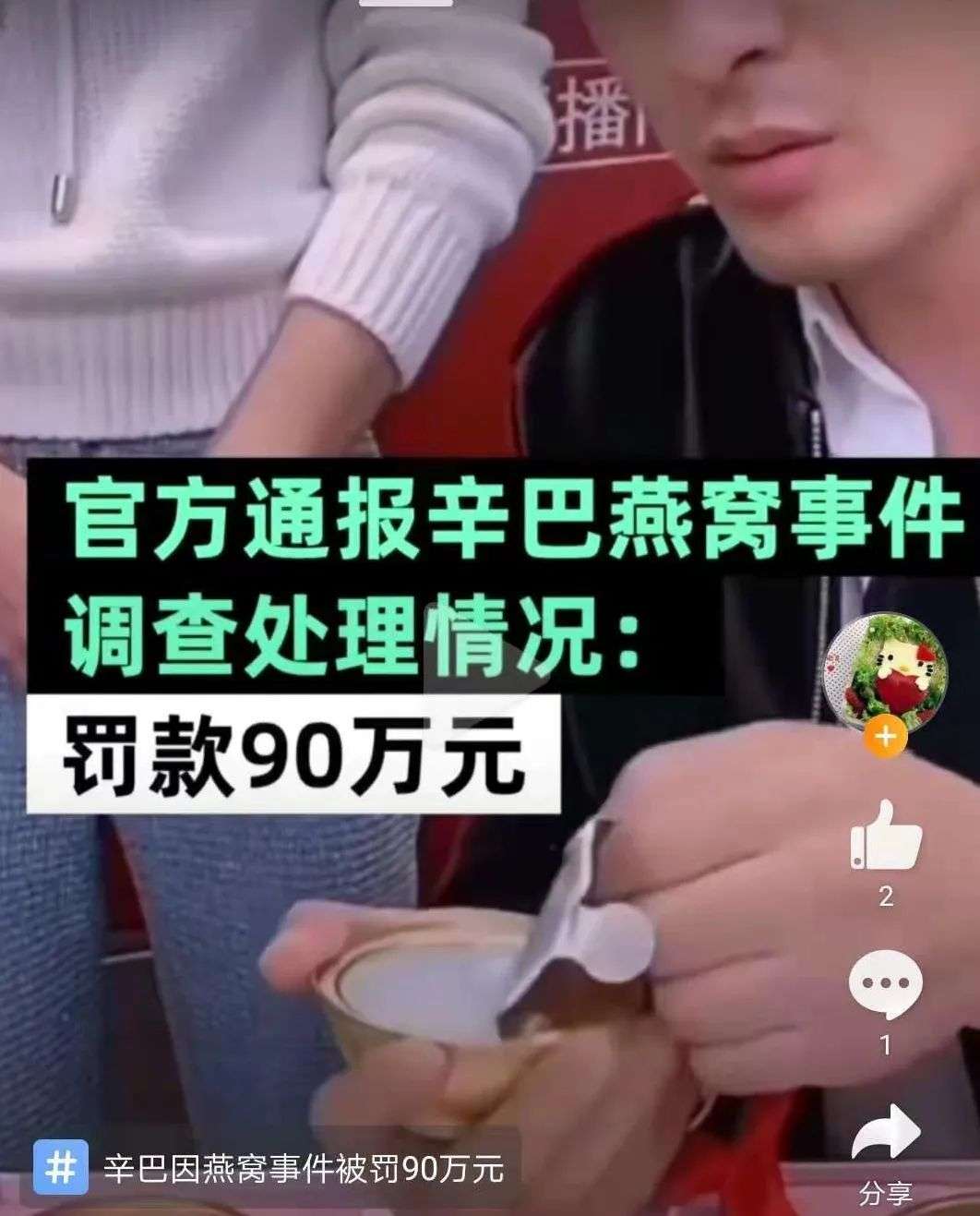 辛巴被罚款90万。图片来自微博截图