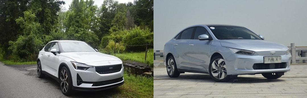 极星2(左)与几何A,图源吉利汽车官微