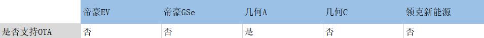 就拿汽车智能化方面为例,据汽车之家数据显示,吉利新能源旗下的帝豪、几何系列和领克等品牌旗下的新能源车型,除几何A拥有OTA升级之外,其他车型均无这一功能。而这一功能,已成为智能汽车最为关键的功能。