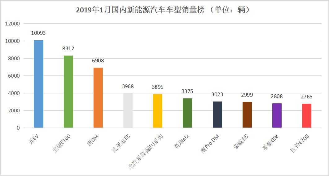 据乘联会数据,2019年1月国内新能源汽车车型销量榜中,帝豪GSe以2808辆仅排在第九位,而比亚迪、长城汽车旗下的元EV和荣威Ei5等车型均排在帝豪GSe,元EV甚至以前者5倍的优势——10093辆排在首位。