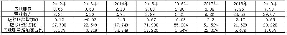 第三,自2014年,南极电商转型贴牌业务后,其应收账款占营收的比重出现大幅提升,且应收账款增加额占比波动增大。