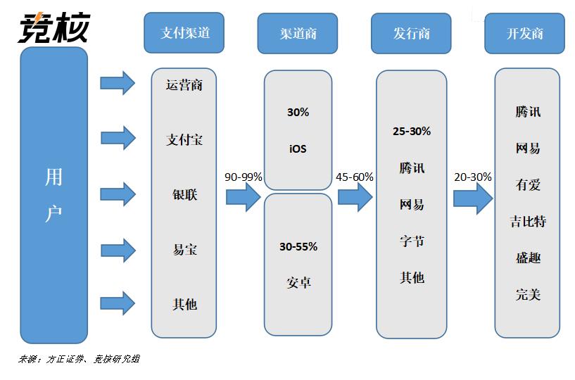 竞核查询七麦数据发现,《红警OL》自11月23日停更至今,总收入预估为126万美元。把时间拉长来看,近三个月该作收入预估为421万美元。折算下来,停更期间损失接近百万美元。更别说,停更期间正值2周年庆典,本是拉高流水的最佳时机。一位资深游戏从业者告诉竞核,字节投资有爱互娱不假,但在商言商。言下之意,即腾讯游戏不会放着到手的利润不要。先跟大家先简单解释下国内手游分成模式:从用户付费到研发商取得收入,中间需要经过支付渠道、渠道、发行商多个环节。支付渠道账期比较短,运营商账期1-3 个月,渠道账期1-3个月,发行商账期1-3个月。开发商回款周期一般最少一个月以上,3-6个月比较正常。