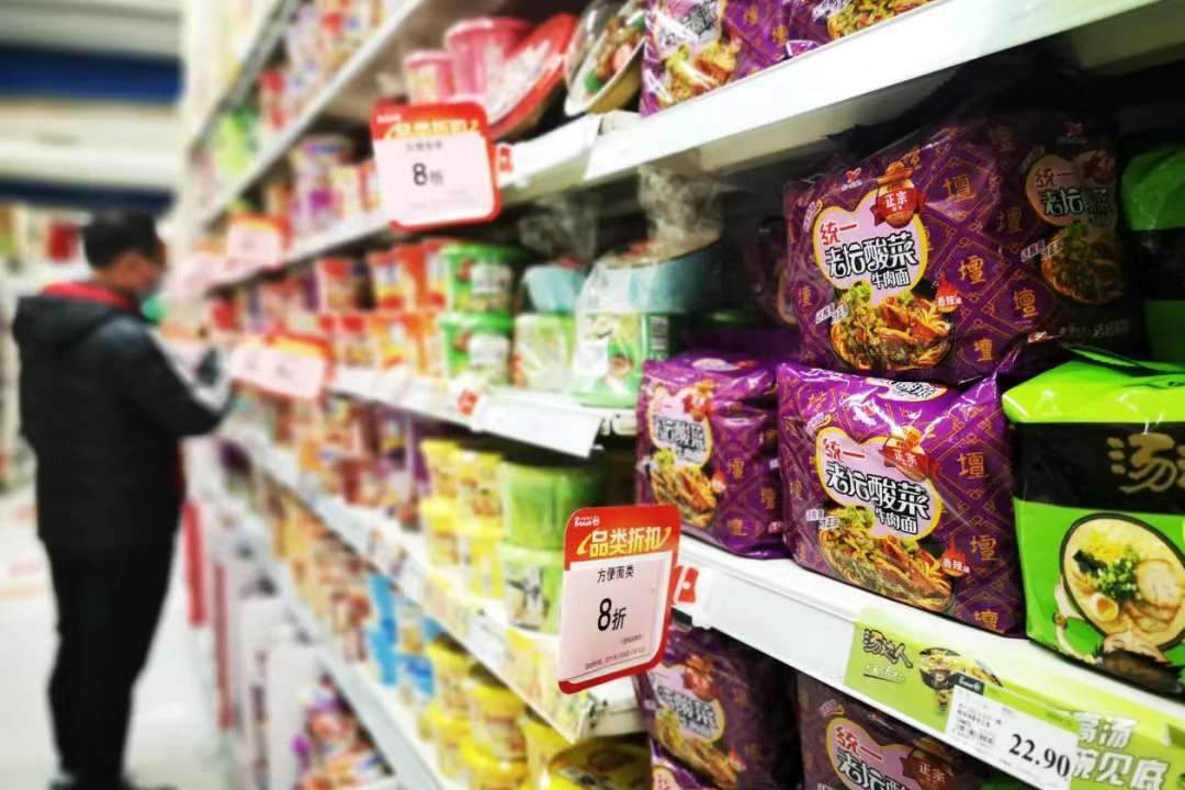 《财经》新媒体近日走访物美、永辉、京客隆等超市发现,只有物美上货今麦郎。物美采购部人士向《财经》新媒体透露,2020年物美全渠道方便面品类的销量占比情况为:康师傅超五成,统一约三成,今麦郎不到两成。