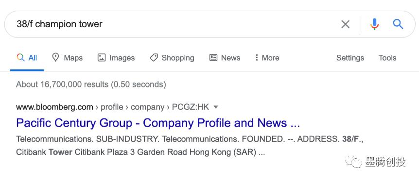 正如之前的猜测,我搜索了上述地址之后,出现的是总部位于香港中环的冠君大厦的盈科拓展集团。