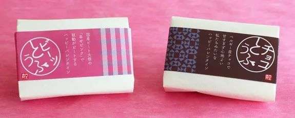 2020年情人节,YamakiJozo公司推出两款特殊的豆制品,试图通过让消费者用它的两种特制豆腐代替巧克力来促进健康。第一种是充满活力的粉红色甜菜味豆腐。只要加一点盐,就能增加大豆的味道和红甜菜的微妙甜味。第二种口味是微甜的比利时巧克力味豆腐。可以试着在豆腐上放一些烤核桃,或去除豆腐中的水分后把它与葡萄干和坚果混合在一起。