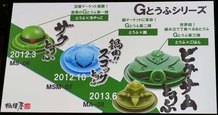 2020年,相模屋发布“机动战士高达40周年纪念版”。产品采用高达零式头部的设计,并相应地在豆腐表面也用金色涂抹,增加了产品的豪华感和视觉冲击力,更是成为原著动漫爱好者的收藏品。