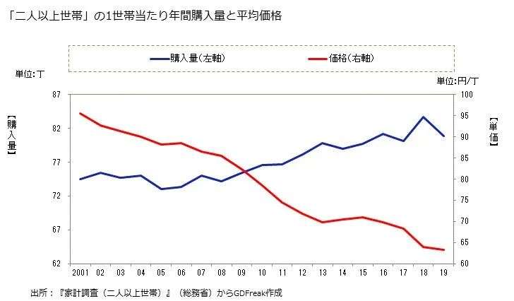 2001-2019年间,日本二人以上家庭的人均豆腐消费量变化。图片来源:jp.gdfreak.com