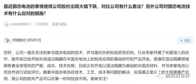收盘之后,投资者纷纷在网络询问锂电池公司:公司对固态电池技术有什么应对措施?
